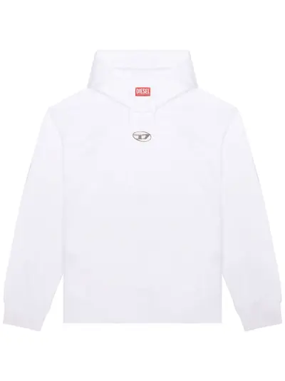 white cotton silver-tone logo plaque drawstring hood extra-long sleeves front patch pocket ribbed cuffs and hem straight hem