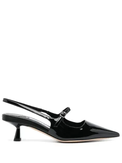 black calf leather patent finish pointed toe slingback strap 45mm mid heel buckle-strap fastening branded leather insole leather outsole