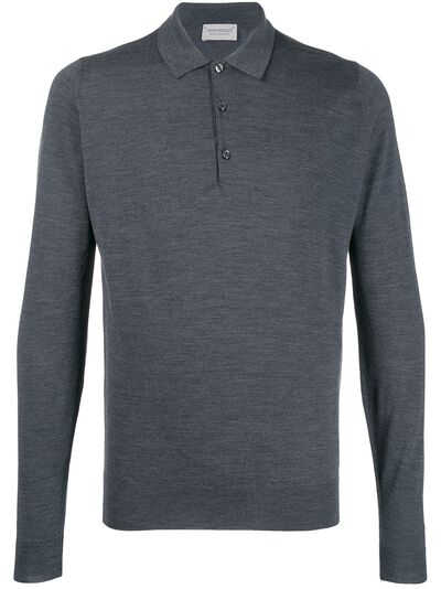 Grey virgin wool Belper shirt from John Smedley featuring a collar style, a button down collar, long sleeves and a ribbed hem and cuffs.