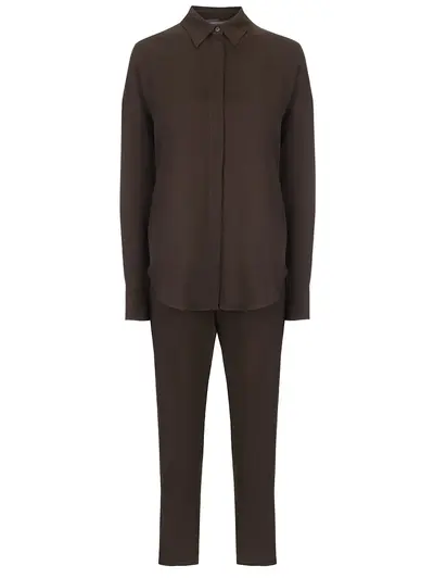 -Коричневый костюм купажированного состава от LORENA ANTONIAZZI.