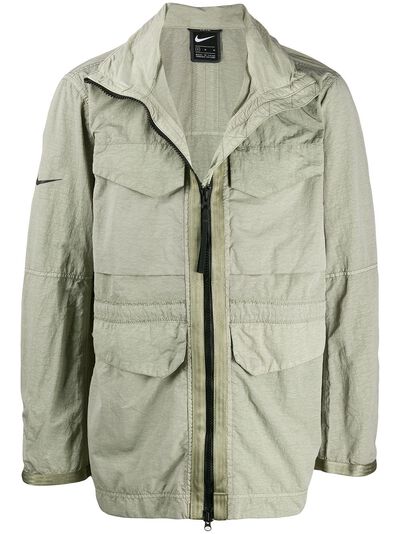 Sportswear giant Nike was founded in 1964 and named after the Greek Goddess of Victory. With a focus on progressive design and technical construction, the label is instantly recognisable thanks to the iconic swoosh logo and Just Do It slogan. This green patch pocket jacket from Nike features a spread collar, a front zip fastening, long sleeves and a short length.