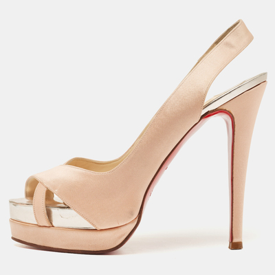 Christian Louboutin Pink Satin Open Toe Platform Slingback Sandals Size 38 837792 (розовый, lpn23835748)