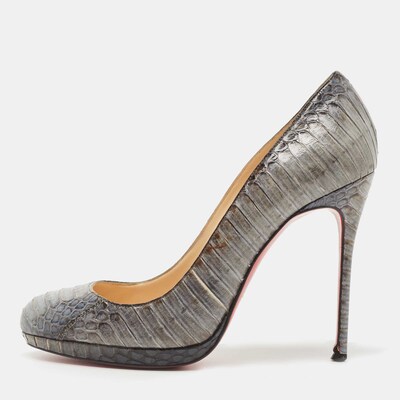 Christian Louboutin Grey Python Leather Round Toe Pumps Size 37.5 847493 (lpn23839435)