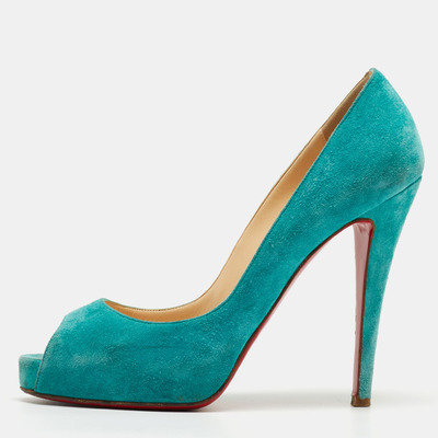 Christian Louboutin Turquoise Suede Very Prive Pumps Size 38.5 856313 (голубой, lpn23845769)