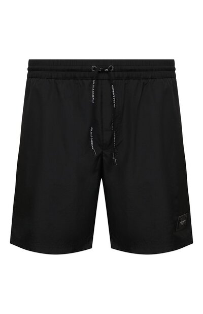Черные плавки-шорты с широким поясом-кулиской сшиты из гладкого матового нейлона, который не боится соленой воды и хлора. По бокам — открытые врезные карманы, задний застегивается на молнию. Легкая модель с сетчатой подкладкой украшена пластиной с логотипом марки.