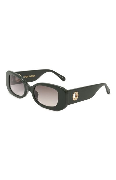 Для изготовления прямоугольных солнцезащитных очков использовали прочный ацетат. Отполированный до блеска материал почти ничего не весит и быстро перенимает тепло кожи, поэтому аксессуар практически не ощущается на лице. Темные градиентные линзы на 100% блокируют УФ-лучи и гасят блики. Широкие дужки украсили фирменными позолоченными люверсами.