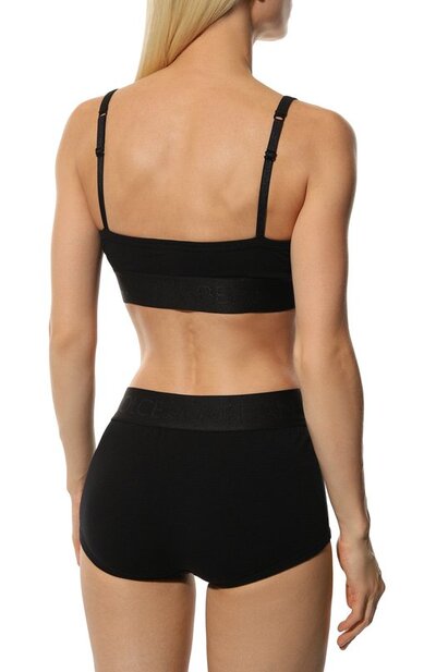 Черное бра с широким поясом и узкими регулируемыми бретелями хорошо поддерживает грудь. Для изготовления модели мастера марки использовали мягкий легкий трикотаж на основе дышащего хлопка и стрейчевых волокон. Такой материал тянется, но не растягивается со временем.