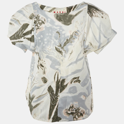 Marni Grey Printed Satin Oversized Sleeve Top L 870547 (lpn24074342)