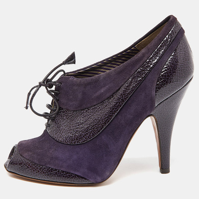 Moschino Purple Suede and Textured Leather Lace Up Peep Toe Ankle Booties Size 37.5 886391 - 1 small