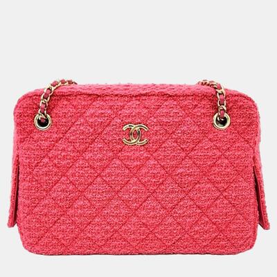 Chanel Pink Leather Tweed Camera Shoulder Bag 889994 (розовый, lpn24242619)