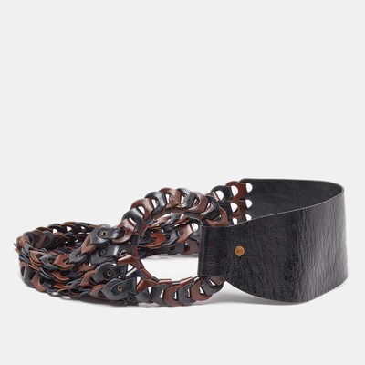 Kenzo Brown/Black Link Leather Round Buckle Waist Belt 893149 - 1 small