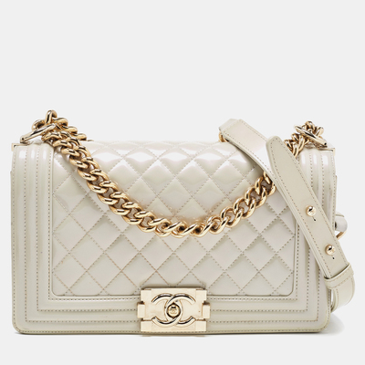 Chanel Pearl White Quilted Patent Leather Medium Boy Flap Bag 890527 (белый, lpn24324566)