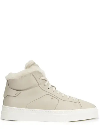 -Высокие бежевые кеды из мягкой кожи от SANTONI.