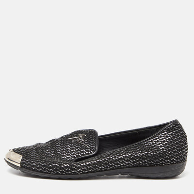 Giuseppe Zanotti Design Black Glitter Leather Slip On Smoking Slippers Size 37.5 904168 (чёрный, lpn24472963)