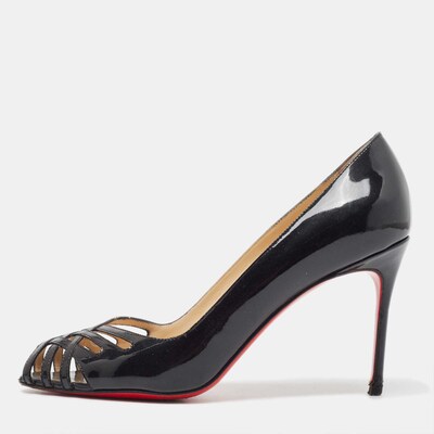 Christian Louboutin Black Cut Out Patent Leather Peep Toe Pumps Size 37.5 907485 (чёрный, lpn24516219)