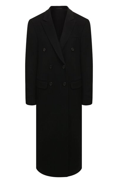 Черный цвет, классический прямой крой и полное отсутствие декора: это двубортное пальто в исполнении Александра Терехова выглядит предельно лаконичным. Для пошива модели с широкими лацканами использовали тонкую мягкую шерсть. Изделие из такого материала хорошо удерживает тепло и комфортно садится по фигуре, не сковывая движения и не утяжеляя силуэт.