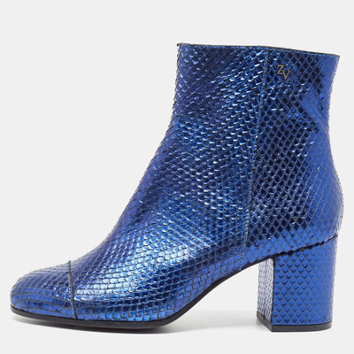 Zadig & Voltaire Zadiq & Voltaire Blue Python Leather Block Heel Ankle Boots Size 37 900356 (голубой, lpn24567687)