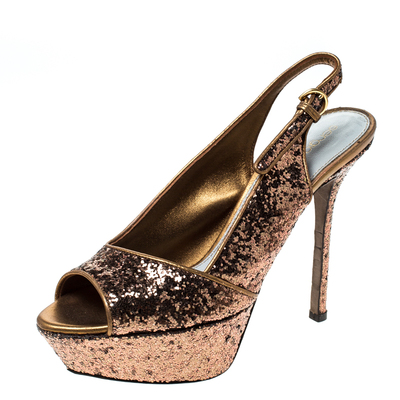 Bold, glamorous and very stylish, these sandals from Sergio Rossi have the power to enchant the crowds. Crafted from metallic gold glitter, these sandals feature a peep toe silhouette and flaunt buckled slingbacks. They come equipped with 12 cm heels, comfortable leather lined insoles and tough platforms. Pair them with high waisted trousers or a chic dress for a fashionable dinner date.