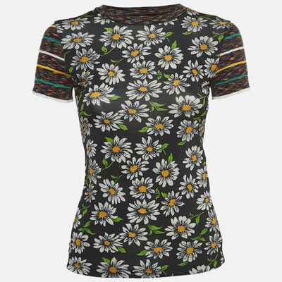 M Missoni Collection Black Floral Print Knit Short Sleeve T-Shirt XS 910971 - 1 small