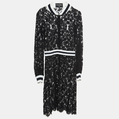 Chanel Black Floral Lace Zip-Up Dress S 904569 - 1