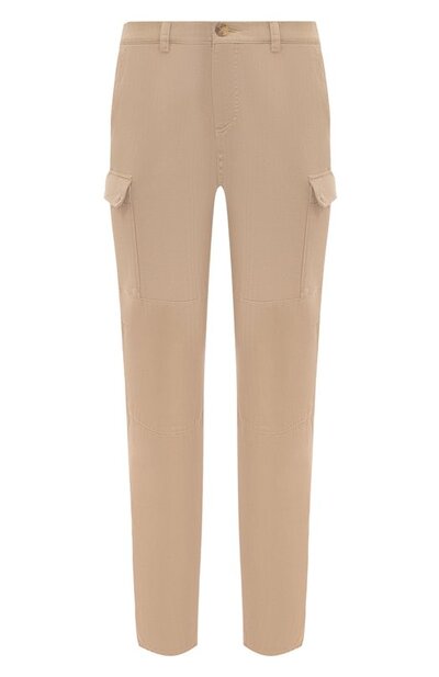 Накладки на коленях и шаговом шве, а также накладные карманы по бокам придают бежевым карго сходство с рабочей униформой. Модель сшили из плотного хлопкового твила с шевронным узором, который не препятствует циркуляции воздуха и хорошо держит форму. Тщательно продуманный крой обеспечивает комфортную посадку изделия по фигуре и свободу движений.