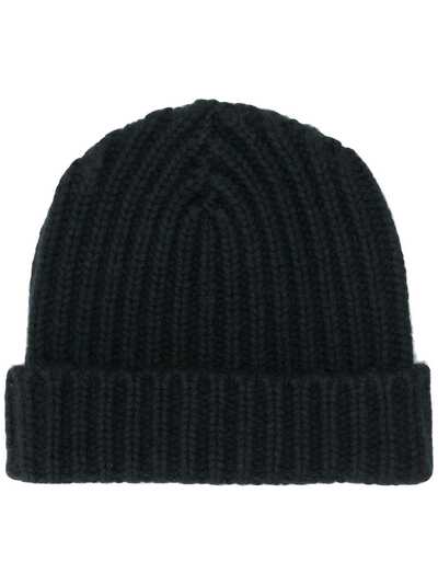 Black cashmere Alex 16 beanie from Warm-Me featuring a ribbed knit, a chunky knit, a turned up hem and no logo.