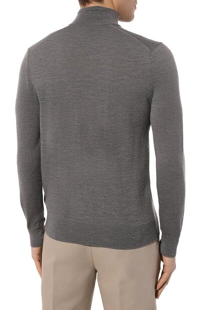 Серый меланжевый джемпер с короткой молнией мастера марки, основанной Вилли Богнером, выполнили из тонкой нежной шерсти первого пострига. Материал приятно ощущается на теле, поддерживает оптимальную терморегуляцию и хорошо тянется, обеспечивая свободу движений и комфортную посадку.