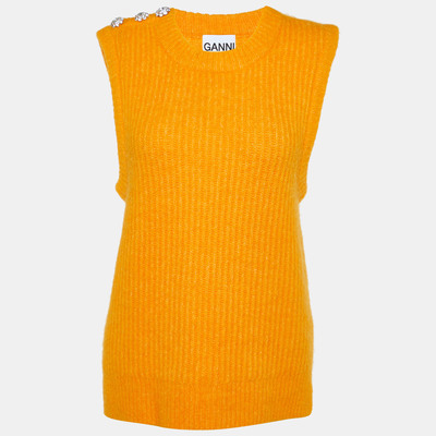 Ganni Orange Wool Blend Crystals Button Detail Sweater Vest M 919909 (оранжевый, lpn24840778)