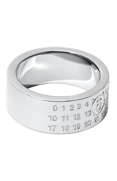 Широкое лаконичное кольцо изготовлено вручную из гипоаллергенного ювелирного сплава, отполированного до идеальной гладкости. Холодный зеркальный блеск изделию придает гальваническое покрытие серебром. Аксессуар украшен выгравированным цифровым кодом, знаковым для бренда.