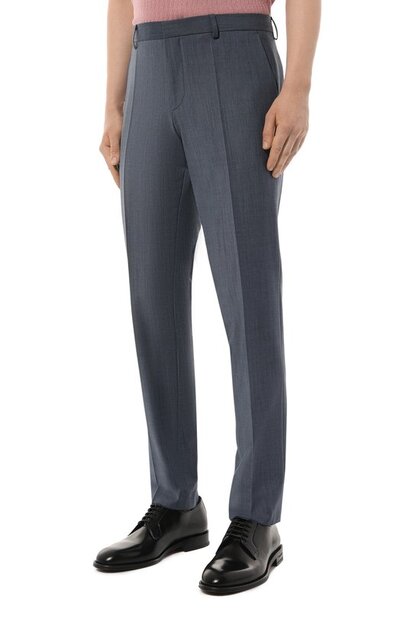 Темно-синие брюки станут основой как повседневного образа, так и офисного комплекта. Для изготовления лаконичной модели мастера марки, основанной Хуго Фердинандом Боссом, использовали приятный на ощупь плотный текстиль, в состав которого добавили мягкую шерсть. Такая ткань почти не мнется, поэтому изделие с отглаженными стрелками будет выглядеть идеально в течение всего дня.