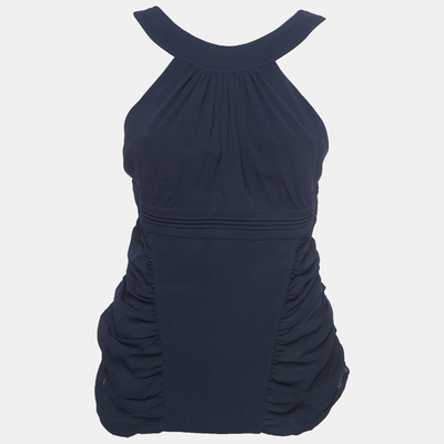 Versace Navy Blue Silk Ruched Strappy Top L 928022 (lpn24953828)