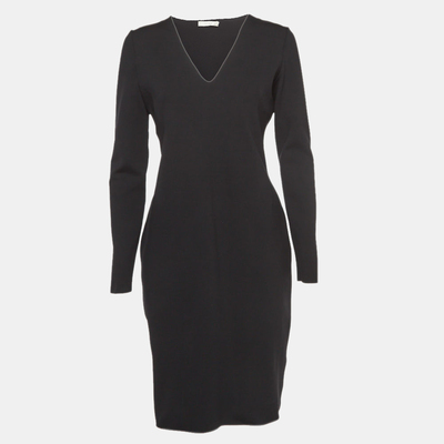 The Row Black Jersey V-Neck Mini Dress L 921276 (чёрный, lpn24957155)