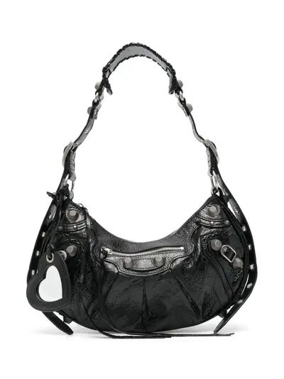 black calf leather crocodile-effect embossed leather strap adjustable shoulder strap metal eyelet detailing mirror tag stud and pleat detailing to the front decorative buckle detail front zip-fastening pocket rear zip-fastening pocket main compartment internal zip-fastening pocket internal logo tag full lining silver-tone hardware top zip fastening This piece comes complete with a protective dust bag.