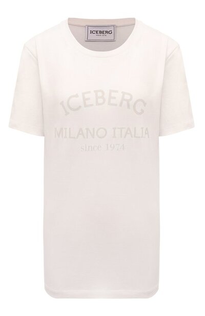 Кремовая футболка получилась предельно лаконичной — даже крупный логотип спереди сделали едва заметным. Удлиненную модель с короткими рукавами сшили из мягкого хлопкового трикотажа, который хорошо пропускает воздух, поддерживая комфорт в течение дня. Наши стилисты предлагают носить изделие с легинсами и туфлями.