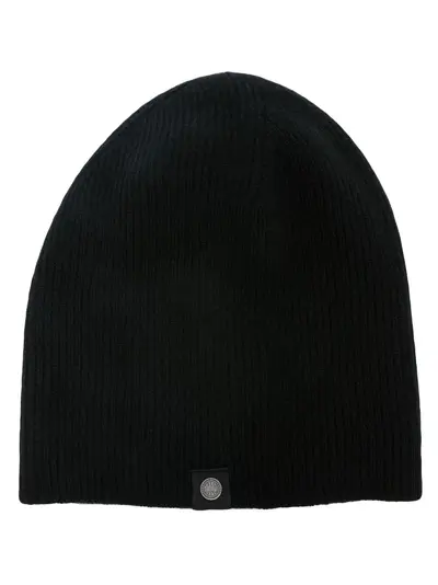 black cashmere knitted construction curved peak logo patch to the front slip-on style