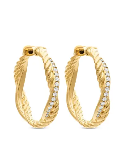 18kt yellow gold white diamond totalling 0.15 carats twist detailing small hoop design pin fastening for pierced ears earrings: 17.3 x 4mm These earrings come as a pair. To ensure the shine and polish of your David Yurman piece, wash with a little non-bleach, soapy water and wipe clean with a soft cloth. Normal everyday use and external agents may reduce the lustre of gemstones and gold surfaces. To maintain, use specific, non-abrasive products specially meant for cleaning jewellery.