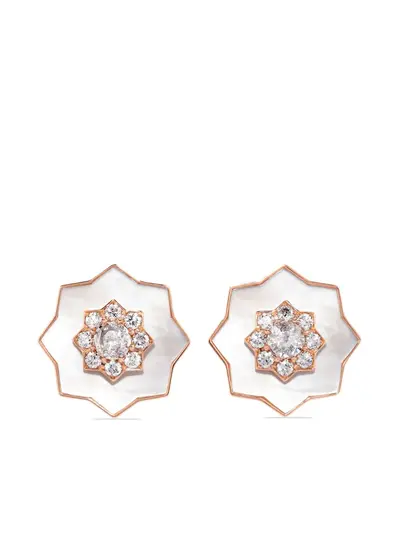 18kt rose gold polished finish star motif mother-of-pearl white diamond rose cut diamond post-back fastening for pierced ears These earrings come as a pair. Normal everyday use and external agents may reduce the lustre of gemstones and gold surfaces. To maintain, use specific, non-abrasive products specially meant for cleaning jewellery.