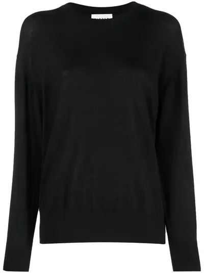 black cashmere fine ribbed ribbed-knit edge round neck drop shoulder long sleeves ribbed cuffs and hem