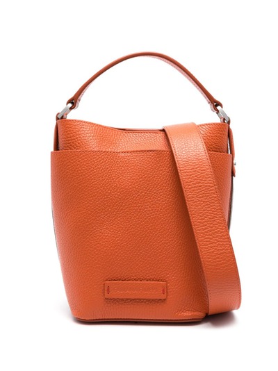 pumpkin orange calf leather pebbled texture logo patch to the front single flat top handle adjustable detachable shoulder strap concealed magnetic fastening slip pocket to the front slip pocket to the rear main compartment internal card slot