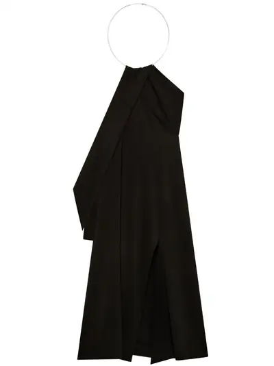 black stretch-design ring hardware detailing strapless draped detailing concealed rear zip fastening knee-length asymmetric hem