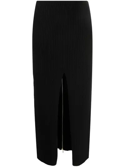 black merino wool ribbed knit front slit high-waisted rear zip fastening ankle-length straight hem