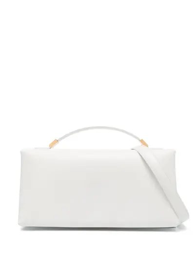 white calf leather smooth grain padded design logo stamp to the rear gold-tone hardware single flat top handle adjustable detachable shoulder strap foldover top with magnetic fastening partitioned compartment