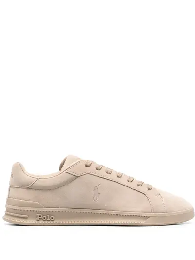 beige calf leather branded insole logo-print tongue round toe front lace-up fastening flat rubber sole