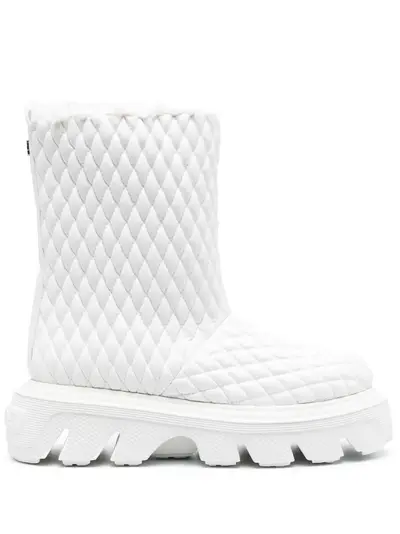 optical white calf leather faux-fur detailing logo plaque logo at the sole ankle-length chunky rubber sole