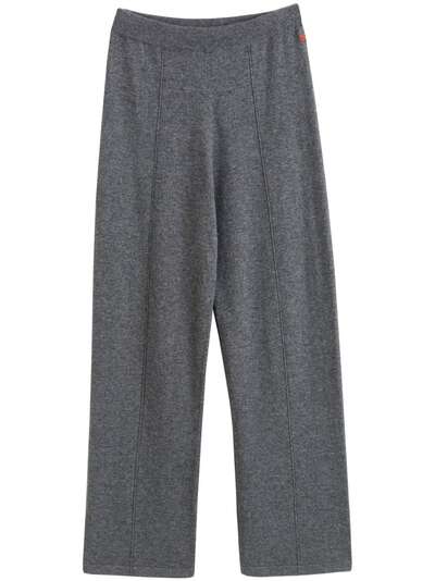 grey wool-cashmere blend knitted construction mélange effect seam detailing embroidered logo at the leg elasticated waistband straight hem