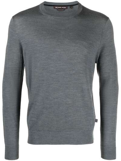 ash grey merino wool fine knit mélange effect crew neck long sleeves ribbed cuffs and hem