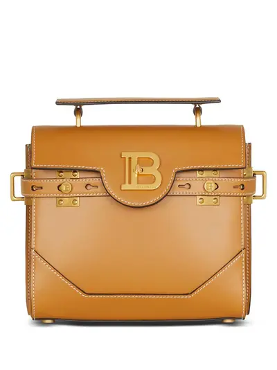 light brown leather gold-tone hardware contrast stitching gold-tone logo lettering single flat top handle adjustable detachable shoulder strap foldover top main compartment
