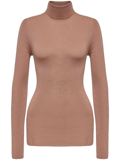 dusty brown merino wool knitted construction roll neck long sleeves straight hem