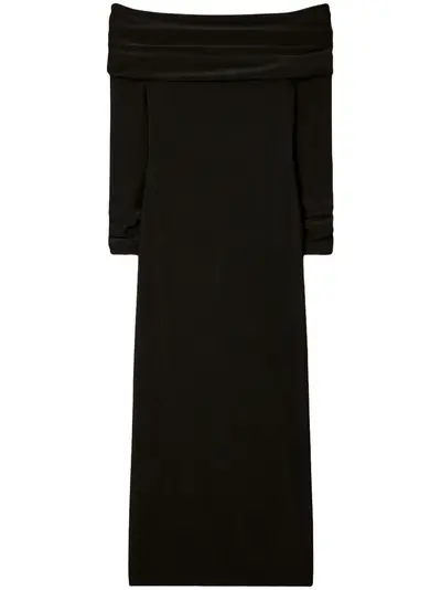 black off-shoulder concealed side zip fastening long sleeves straight hem mid-length