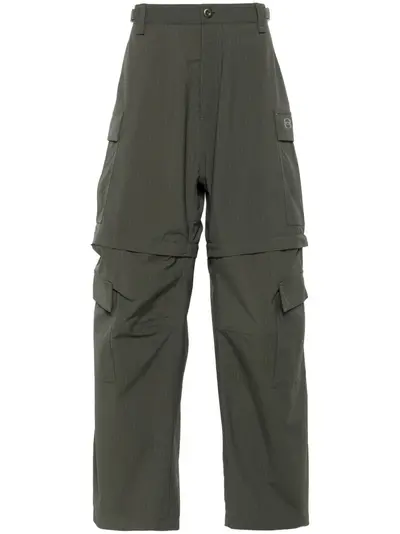 khaki ripstop texture embroidered logo to the front logo-engraved tonal hardware dart detailing belted waist tabs mid-rise wide leg two diagonal pockets to the sides two rear flap pockets multiple cargo pockets belt loops front button fastening zip fly fastening unlined When buying this unisex item, keep in mind that it is graded in standard men's sizing.